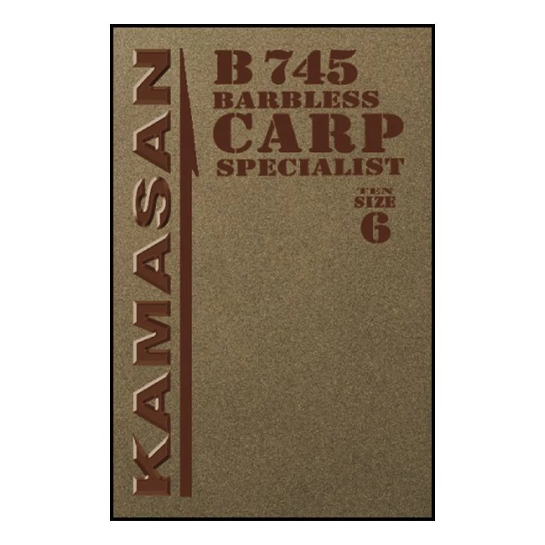 Produced in super high carbon steel wire to increase strength and to maintain sharpness, the B745 barbless also has a slick teflon coating which improves durability and penetration. With its long straight shank, down turned eye and special bend, the design is a popular and well proven shape, perfect for all modern anti-eject rigs. Size 6.