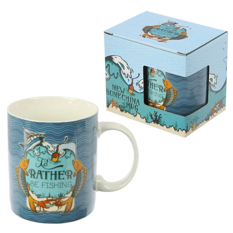 I’d rather be fishing novelty mug in its own display box. Bone China.