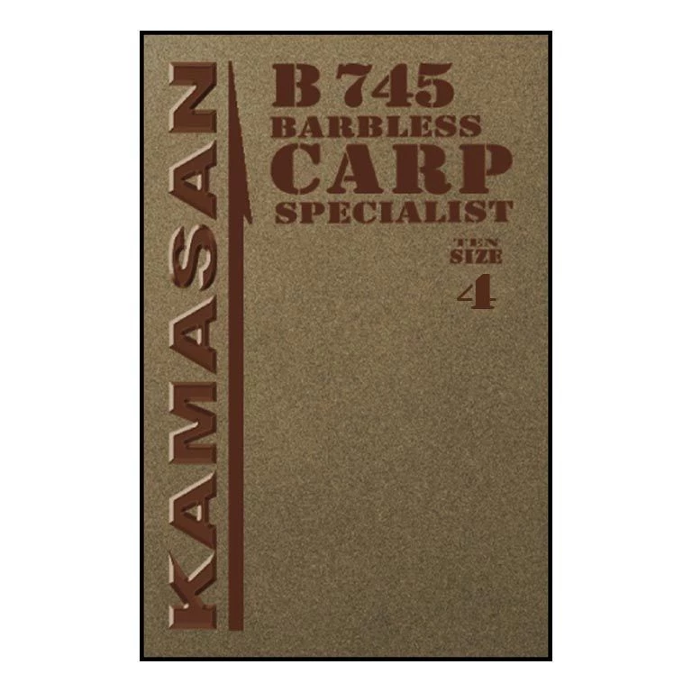 Produced in super high carbon steel wire to increase strength and to maintain sharpness, the B745 barbless also has a slick teflon coating which improves durability and penetration. With its long straight shank, down turned eye and special bend, the design is a popular and well proven shape, perfect for all modern anti-eject rigs. Size 4.