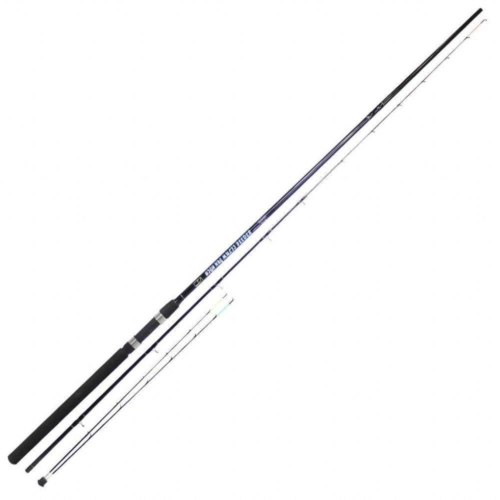 This 10ft feeder rod is supplied with 3 different weight tips to cope with most fishing applications. The spare quiver tips are stored in the bottom section of the rod for ease of use and access. 10ft/3.00m 2 Piece.
