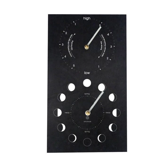 This clock provides a great indication of tidal heights (neap and spring) in conjunction with the tide clock.