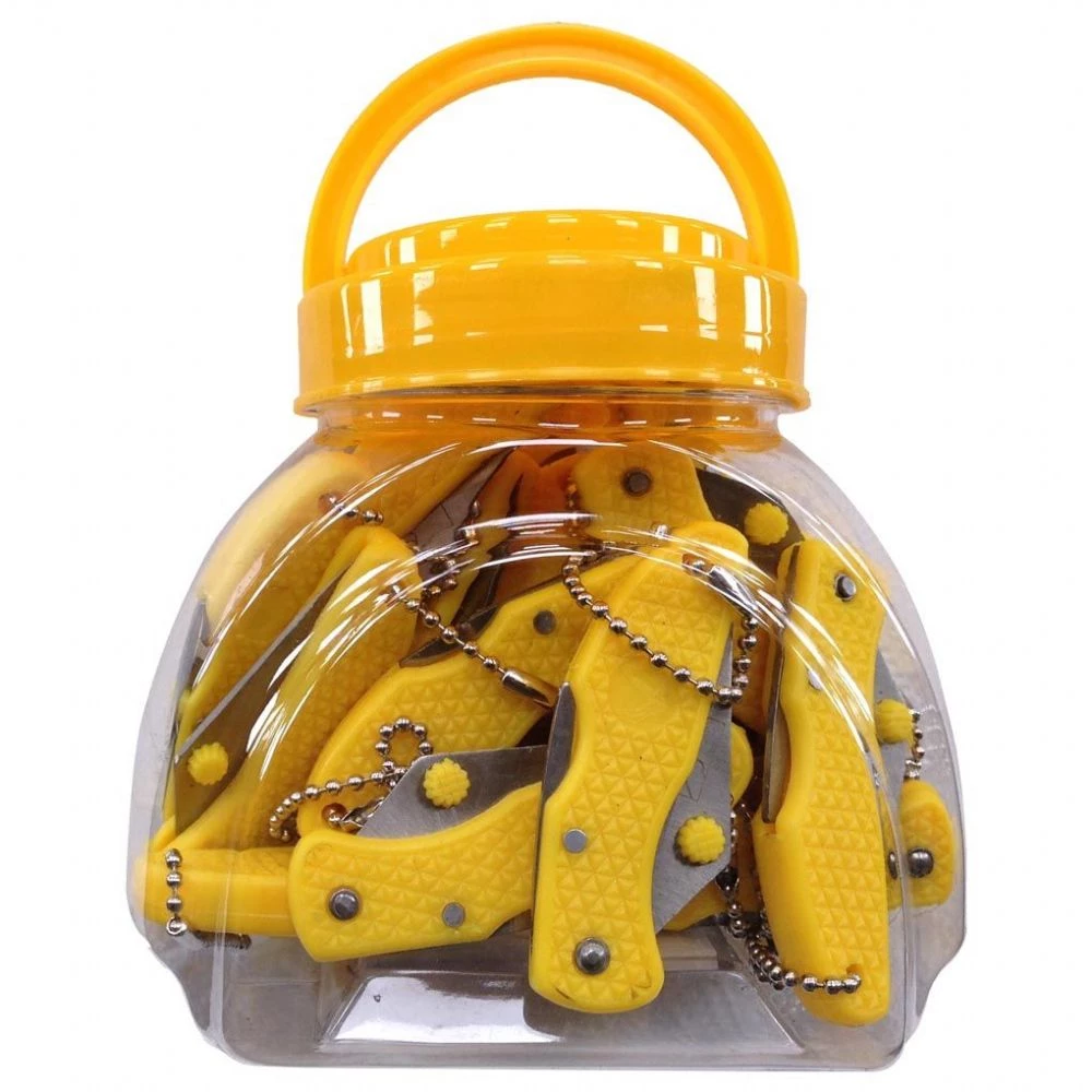 A counter top tub of small bait penknives. These are perfect for cutting up strips of bait.